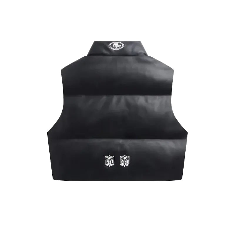 San Francisco 49ers Faux Leather Cropped Puffer 2025 Black Vest